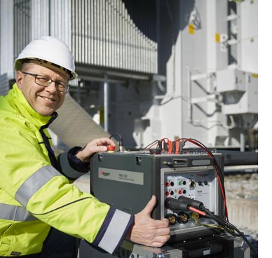 Optimised for transformer and general substation testing, TRAX test systems are capable of performing more than 20 different test functions including, for example, measurement of winding resistance, turns ratio, excitation current, short-circuit impedance, tan delta and capacitance, and frequency response of stray losses, as well as CT and VT testing and circuit breaker timing and motion analysis.